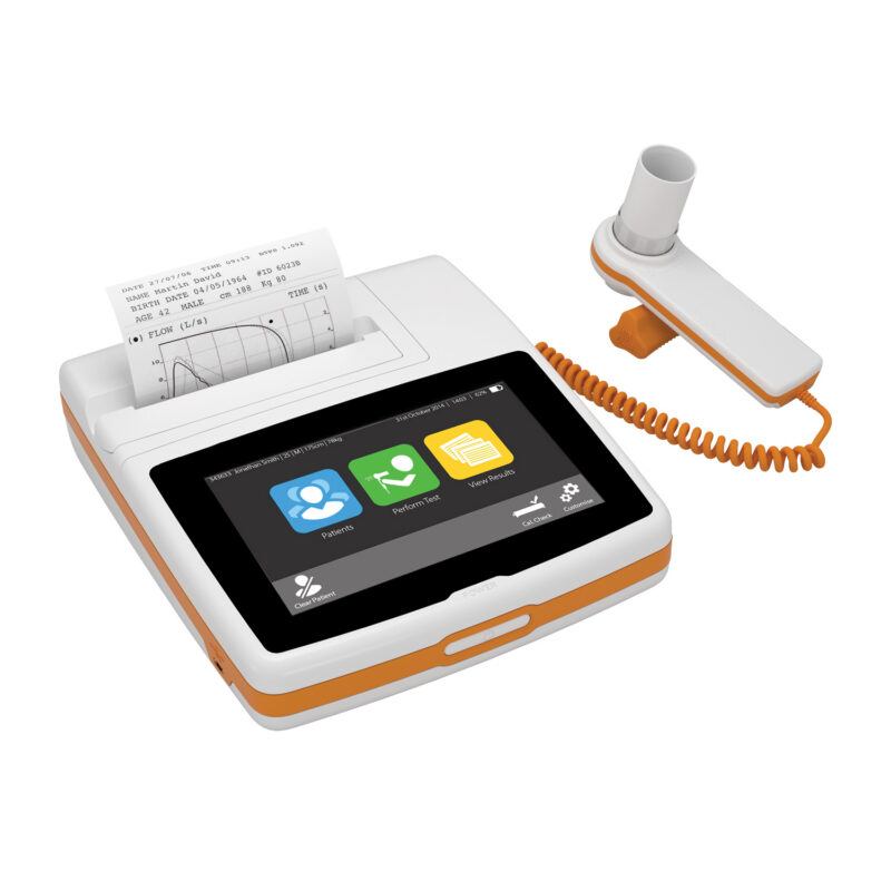 The Spirolab Spirometer is a compact, advanced desktop spirometry system. It is commonly used in clinical and office settings for pulmonary function testing.